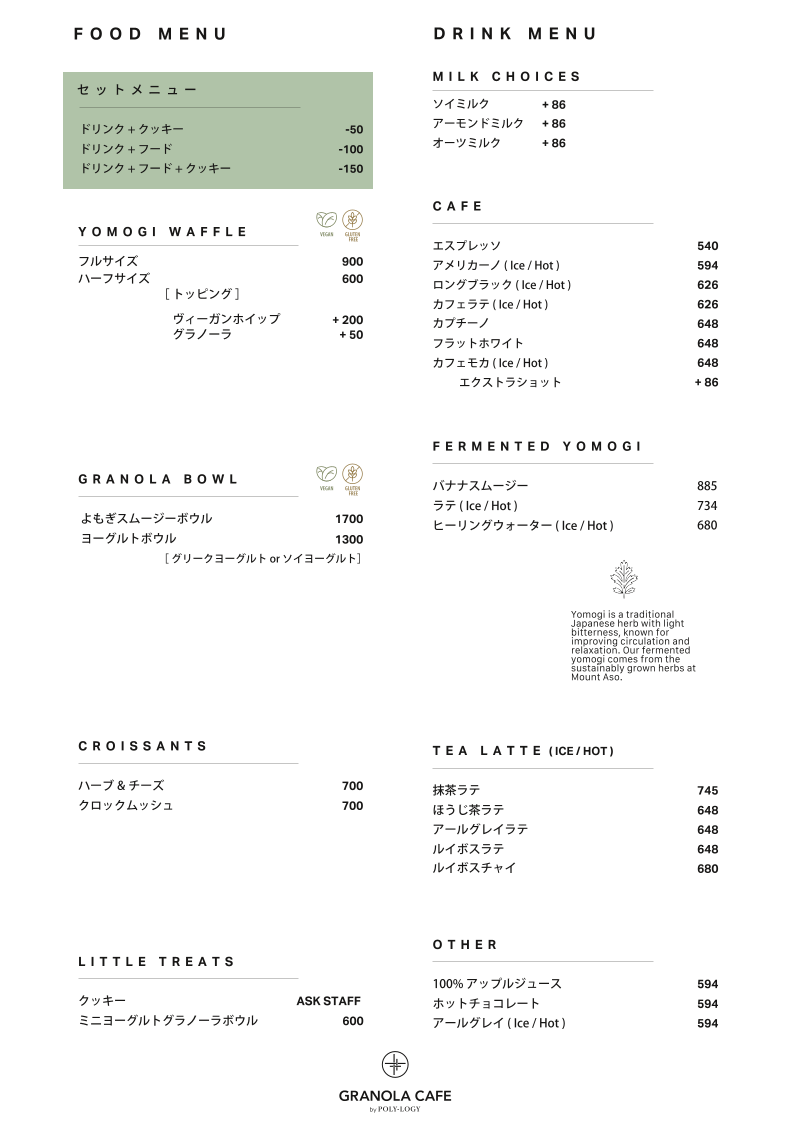 POLY-LOGY CAFE @ canvas tokyo bldg. Menu